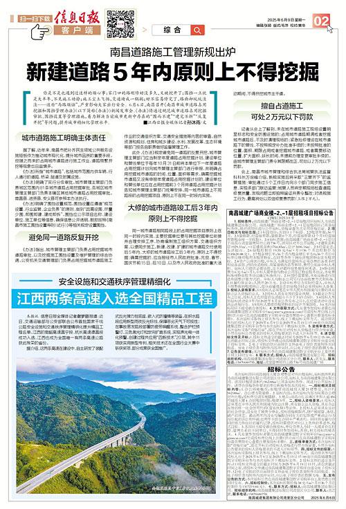 本报讯信息日报全媒体记者谢梦丽报道:近日,交通运输部与公安部联合公布首批国家干线公路安全设施和交通秩序管理精细化提升精品工程名单。江西的南韶高速昌宁段、杭长高速德昌段成功入选,江西也成为全国唯一有两条高速公路获此殊荣的省份。